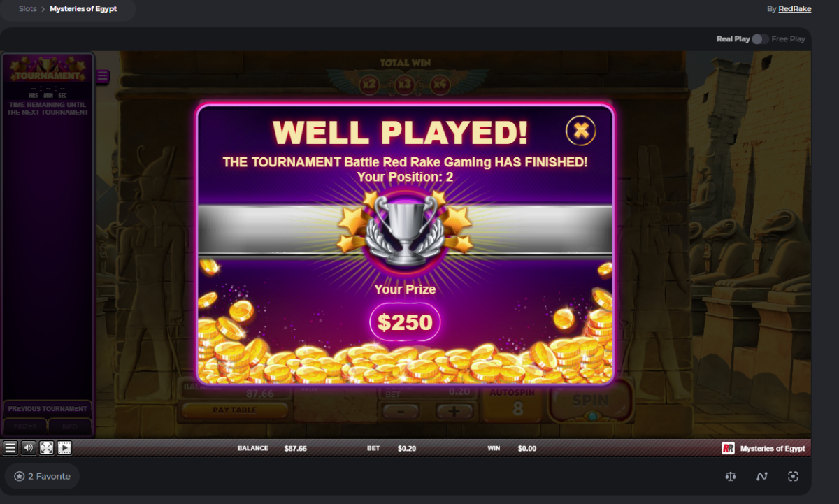 2. The tournament is available only during real-money play.